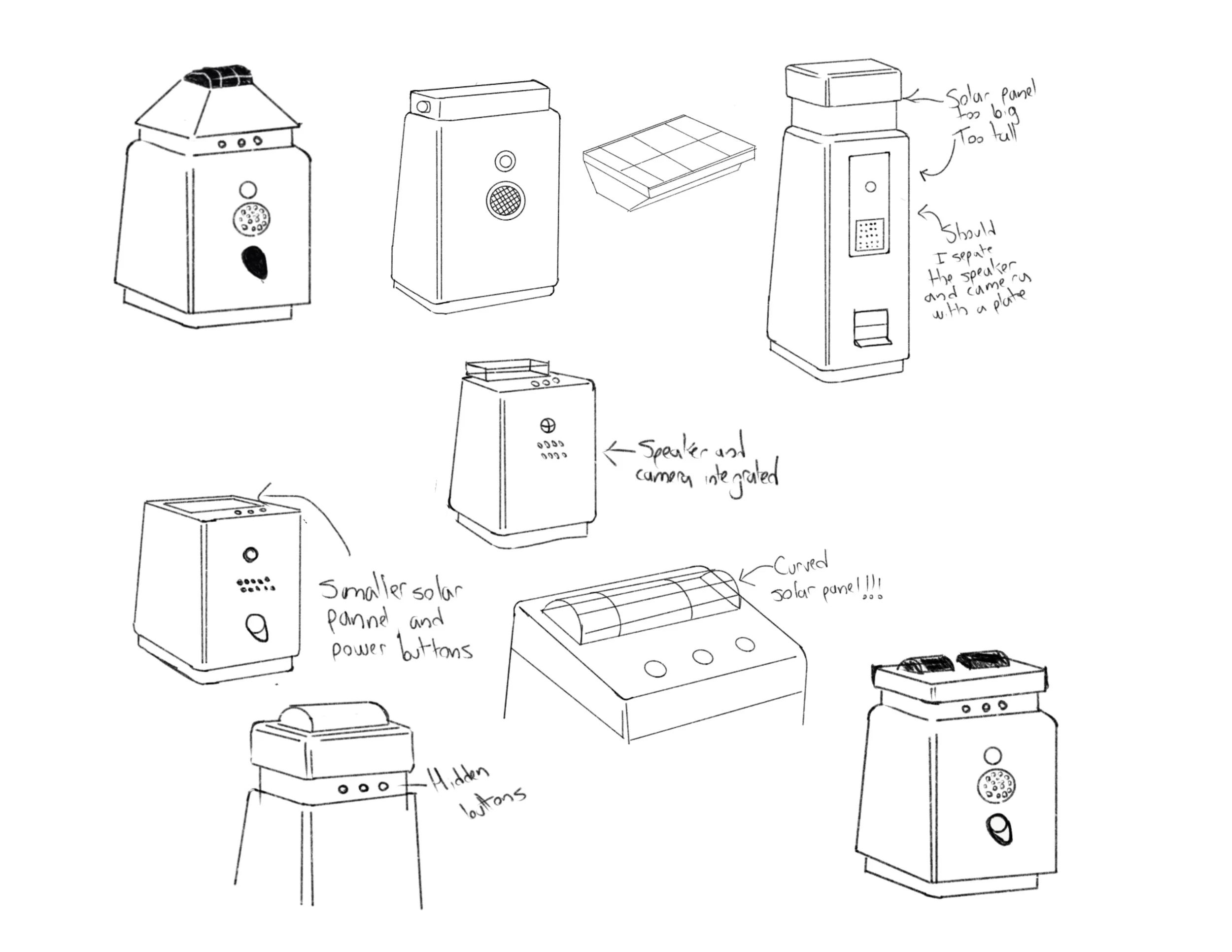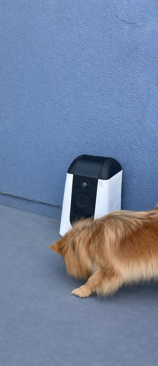 Building 1:1 prototypes allowed me to evaluate physical presence, camera and speaker location, solar panel size, treat container capacity, and dispensing access.