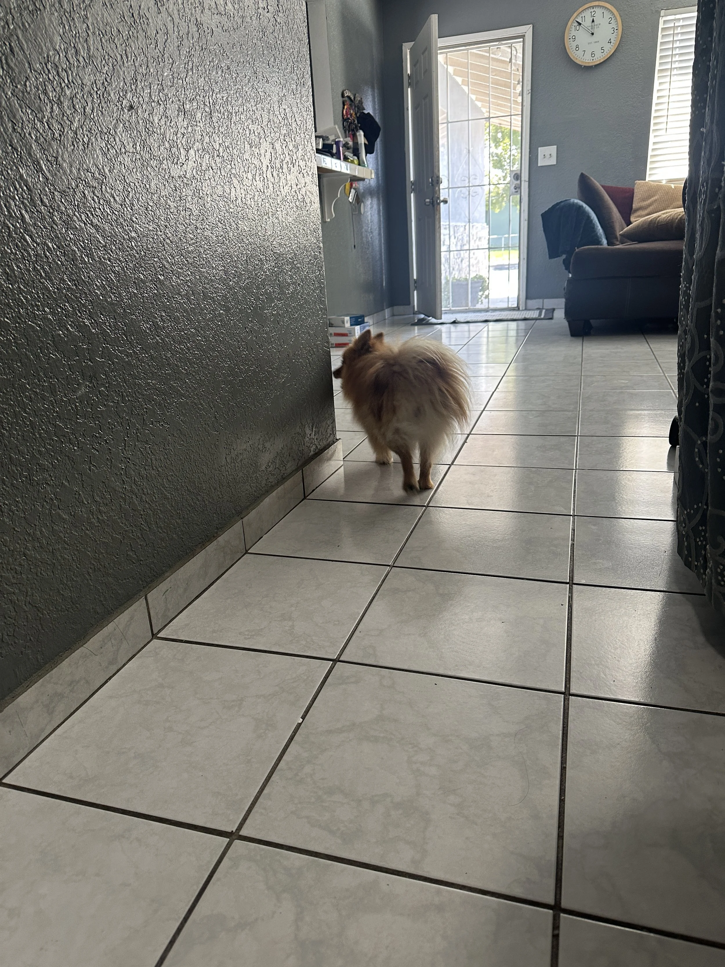 Dog tries to hide
