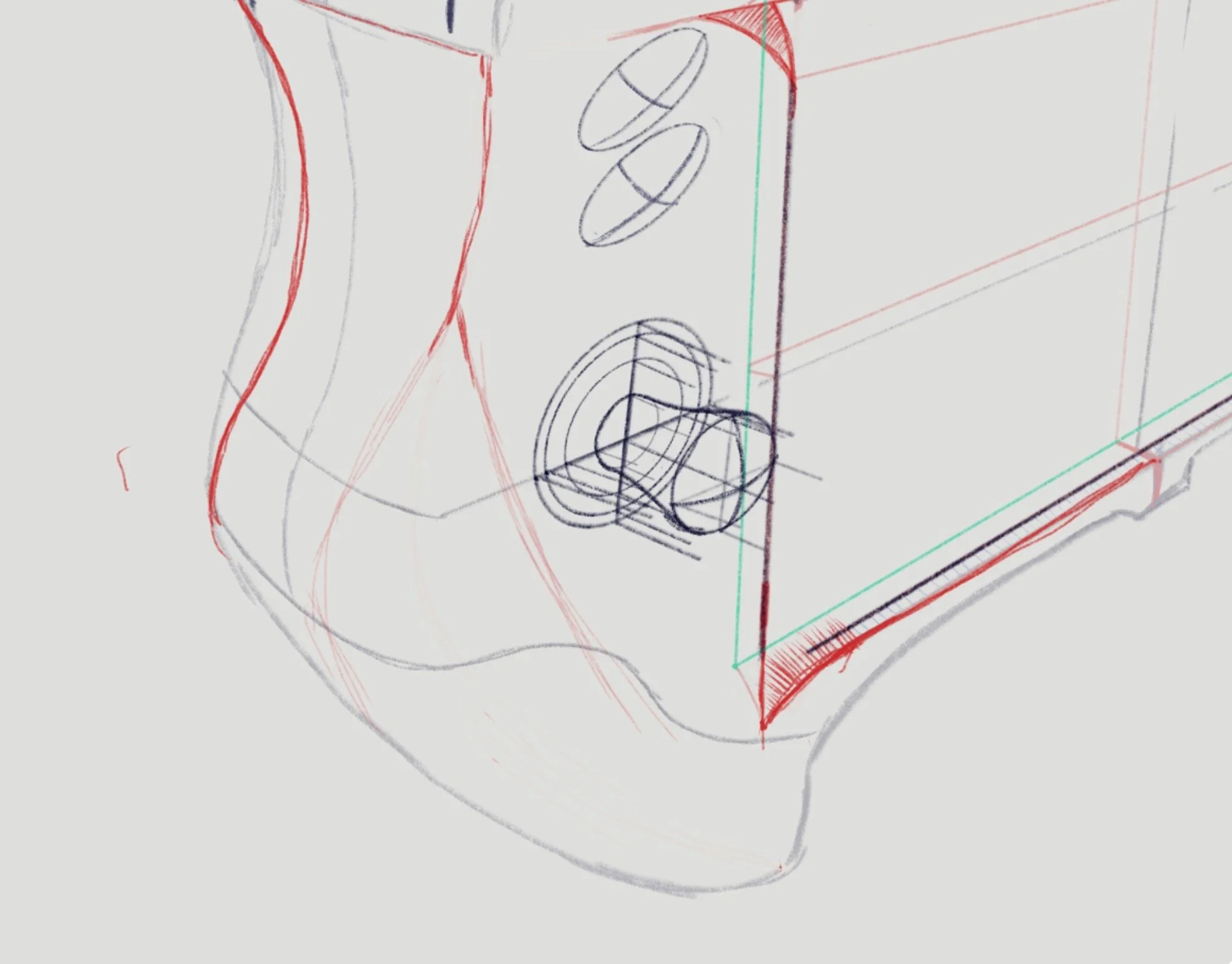 After defining the overall form, the next step was adding the final details, including buttons, triggers, screen transitions, and parting lines.